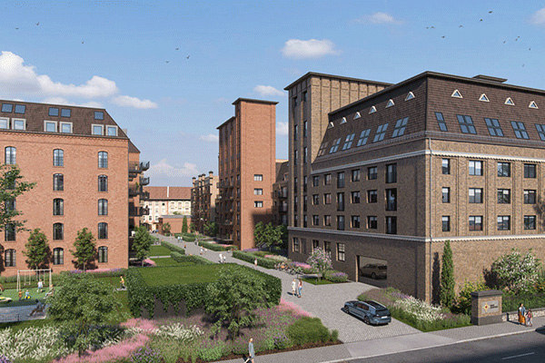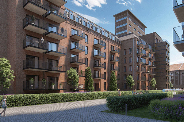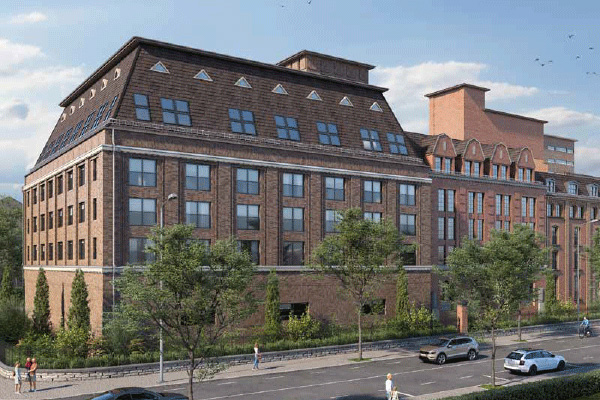Die Backsteinfassade mit ihren reichen Ornamenten bleibt bei der denkmalgerechten Sanierung vollständig erhalten; im Inneren entstehen 145 moderne Wohneinheiten und eine Tiefgarage mit 65 Stellplätzen. Auf bis zu sieben Etagen trifft authentische Industriearchitektur auf modernen Wohnkomfort.